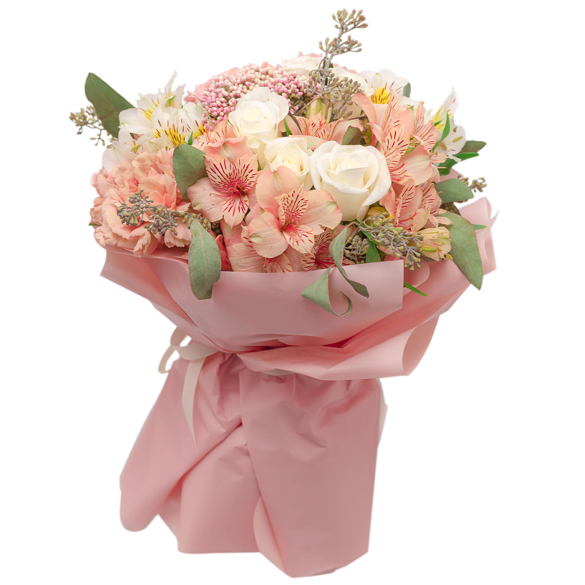 | Состав | Альстромерии, Розы, Эвкалипт |