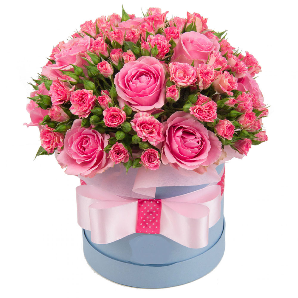 Роза одноголовая розовая, роза кустовая розовая. Упаковка (шляпная коробка, квадратный бокс, коробка сердце, оазис)